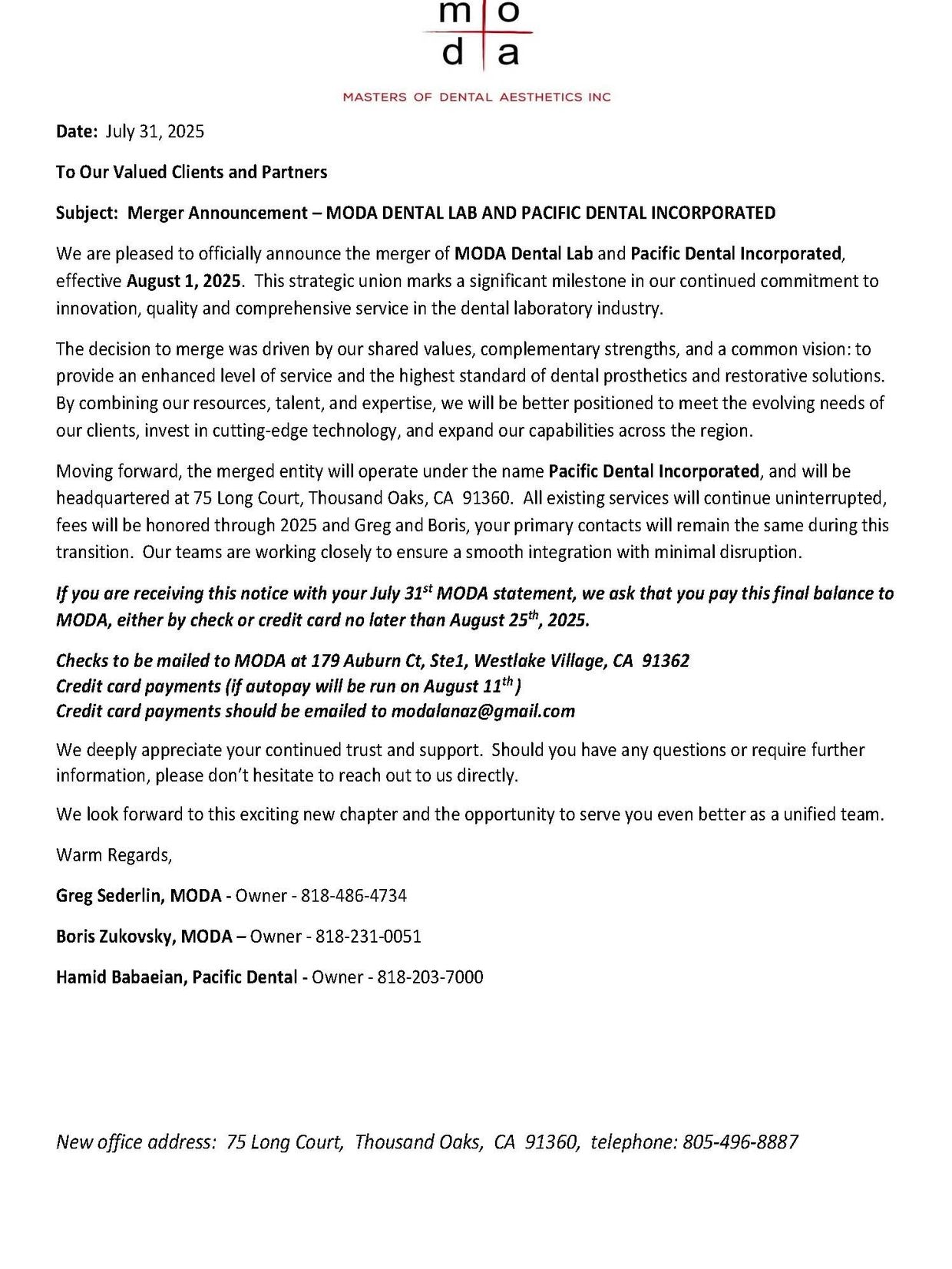 866.MODALAB 818.932.9004 805.496-8887 PacificdentalLab@gmail.com